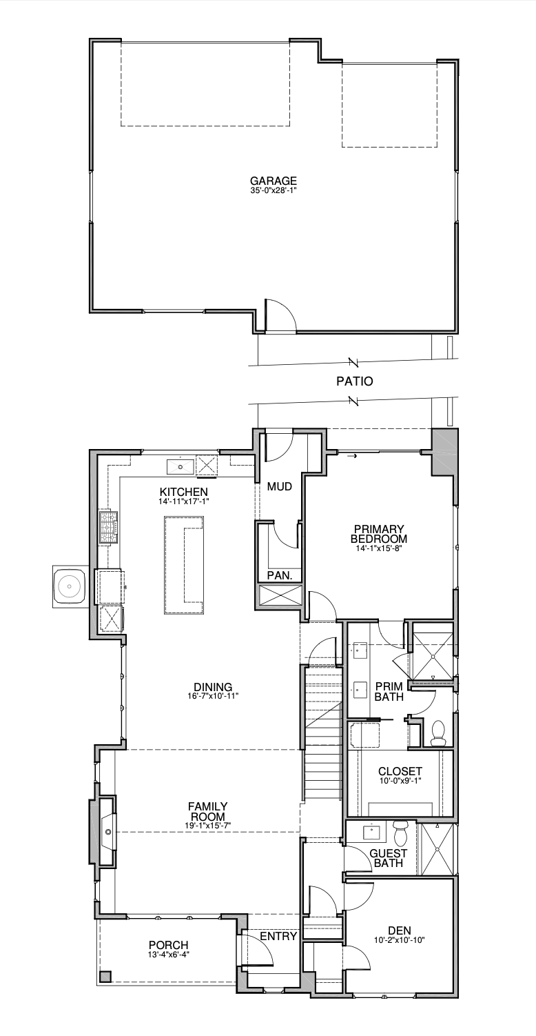 The Heyburn offers a bright and spacious layout designed for effortless everyday living. The open-concept main floor connects the kitchen, dining, and family room for seamless entertaining, while a large patio extends the living space outdoors. A convenient den near the entry provides flexibility for work or guests, and the primary bedroom on the main level includes a spa-like bath and generous walk-in closet.