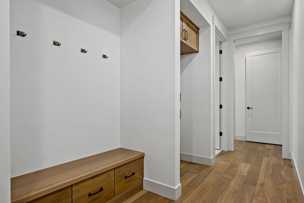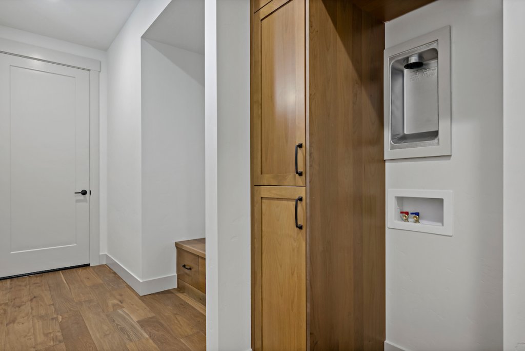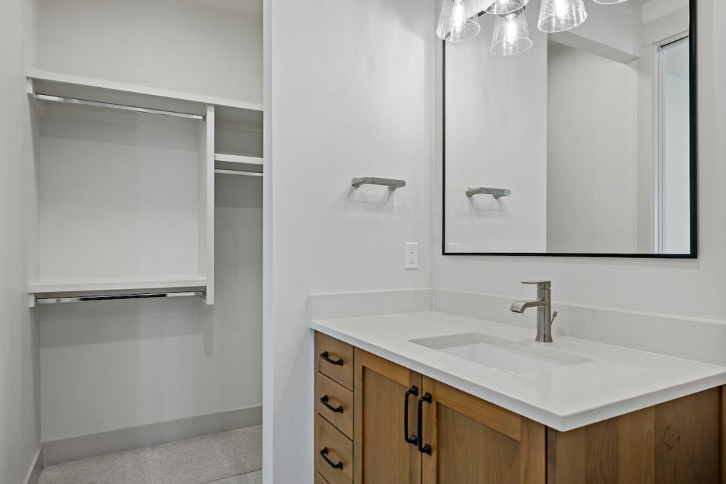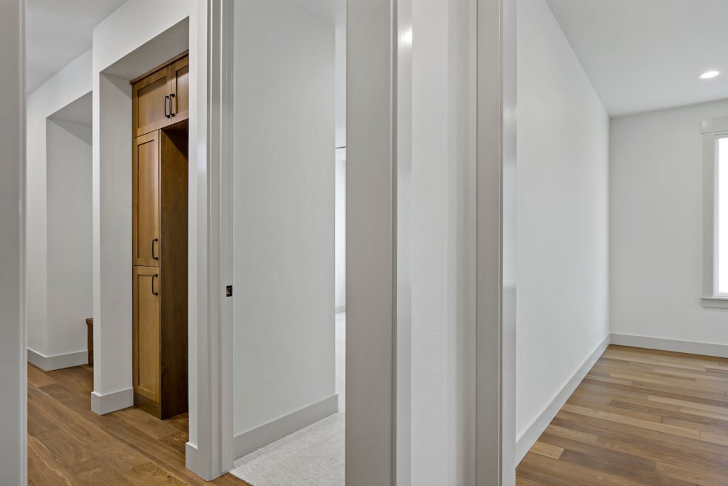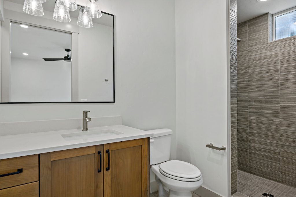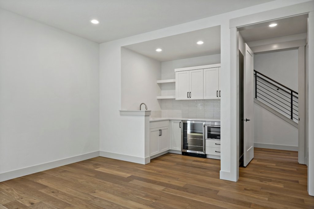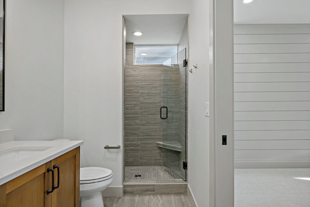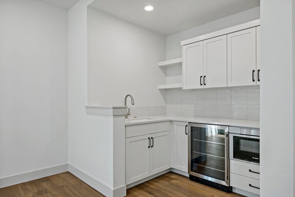 The private suite functions as a home within a home, ideal for extended stay guests, or personalized living. It includes its own separate entrance, kitchenette, living area, spacious bedroom with attached bathroom, laundry space, and a one-car garage, offering independence while staying connected.