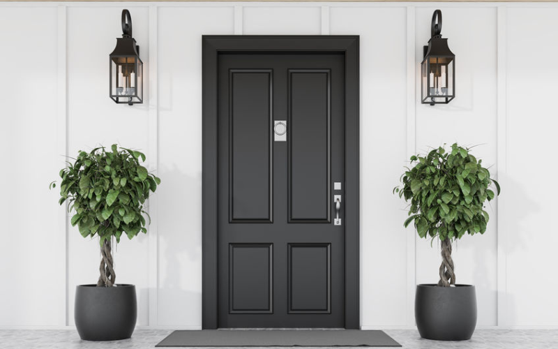 Black is probably the most formal color for a front door. A Zillow study showed that homes with black front doors can sell for thousands more than similar homes with lighter or brighter doors. However, you may not want to use black if your door gets direct sun. It will get very hot and the door can warp from the intense heat.